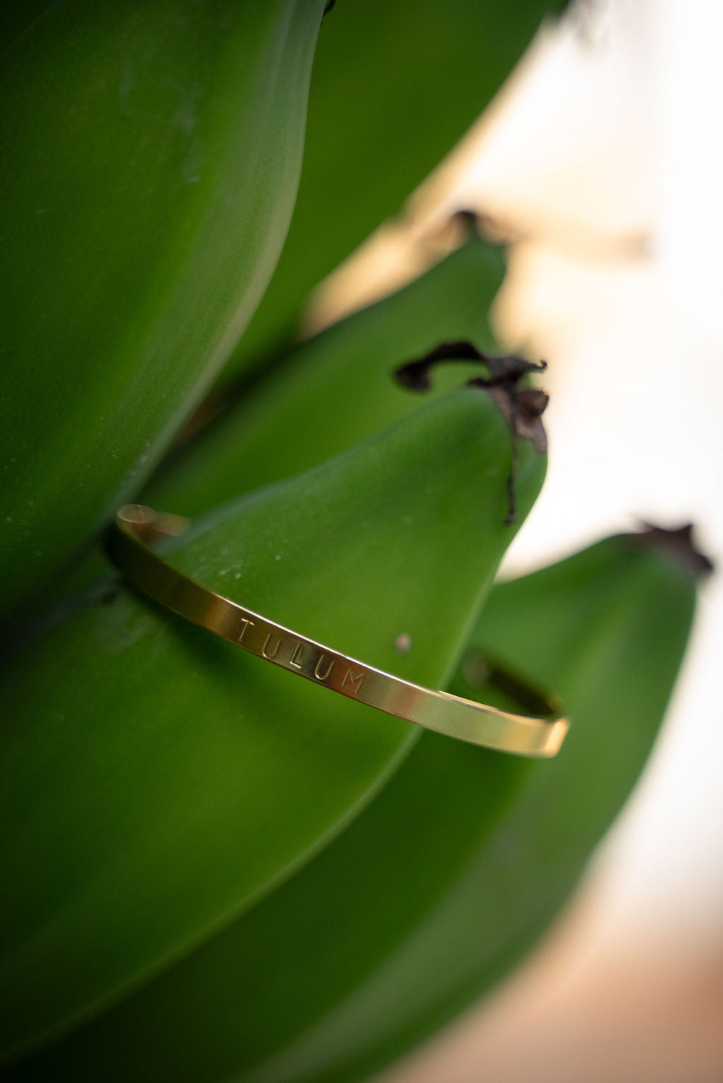 Pulso color dorado grabado a mano, puedes grabar nombres, fechas, números o iniciales que tú quieras.